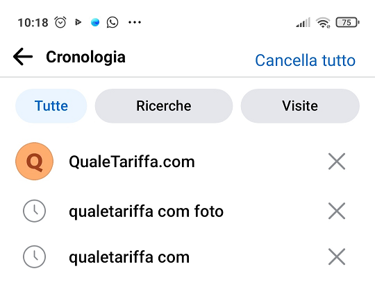 - Per eliminare sia le ricerche che le visite dalla cronologia di Facebook assicurati di aver selezionato Tutte in alto a sinistra e poi clicca su Cancella tutto.